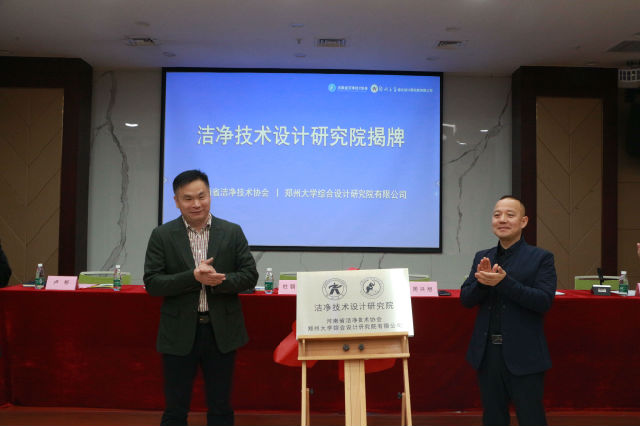 在河南省洁净技术设计研究院揭牌仪式上,河南省洁净技术协会会长周兴旭,郑州大学综合设计研究院总经理杜朝华签署了战略框架合作意向书,并共同为河南省洁净技术设计研究院揭牌。据悉,这是迄今为止河南省第一所协院强强联合成立的洁净技术专业设计研究院!