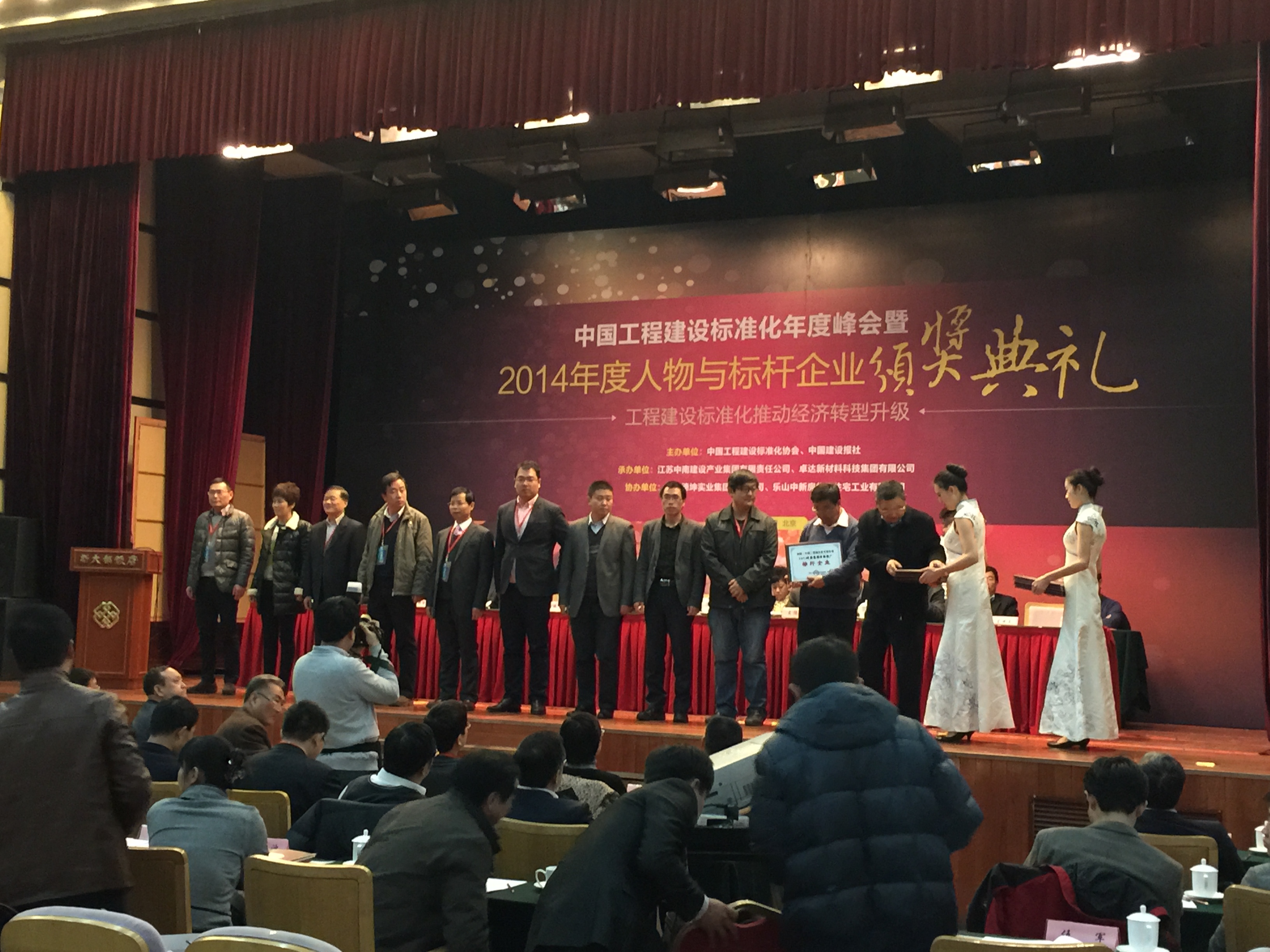 2014年12月19日,中国工程建设标准化年度峰会暨2014年度人物与标杆企业颁奖典礼在北京新大都饭店国际会议中心隆重召开。国家有关部委、有关行业协会领导、主办单位领导及200余家企业代表参加此次盛会。会议围绕工程建设标准化推动经济转型升级这一主题,邀请国内知名专家结合国家宏观经济形势和新型工业化、信息化,特别是城镇化发展趋势,采取探讨、对话交流等形式,分析新趋势,探索新思路,交流新经验。会上还对50位年度人物和50家标杆企业进行了表彰,我院荣获“2014低碳环保推广标杆企业”称号。这项荣誉充分肯定了我院在绿色低碳、节能减排、生态环保方面所做的工作,以此为契机,我院将在工程设计领域积极参与制标、对标、贯标工作,对工程建设标准化事业做出更大贡献。