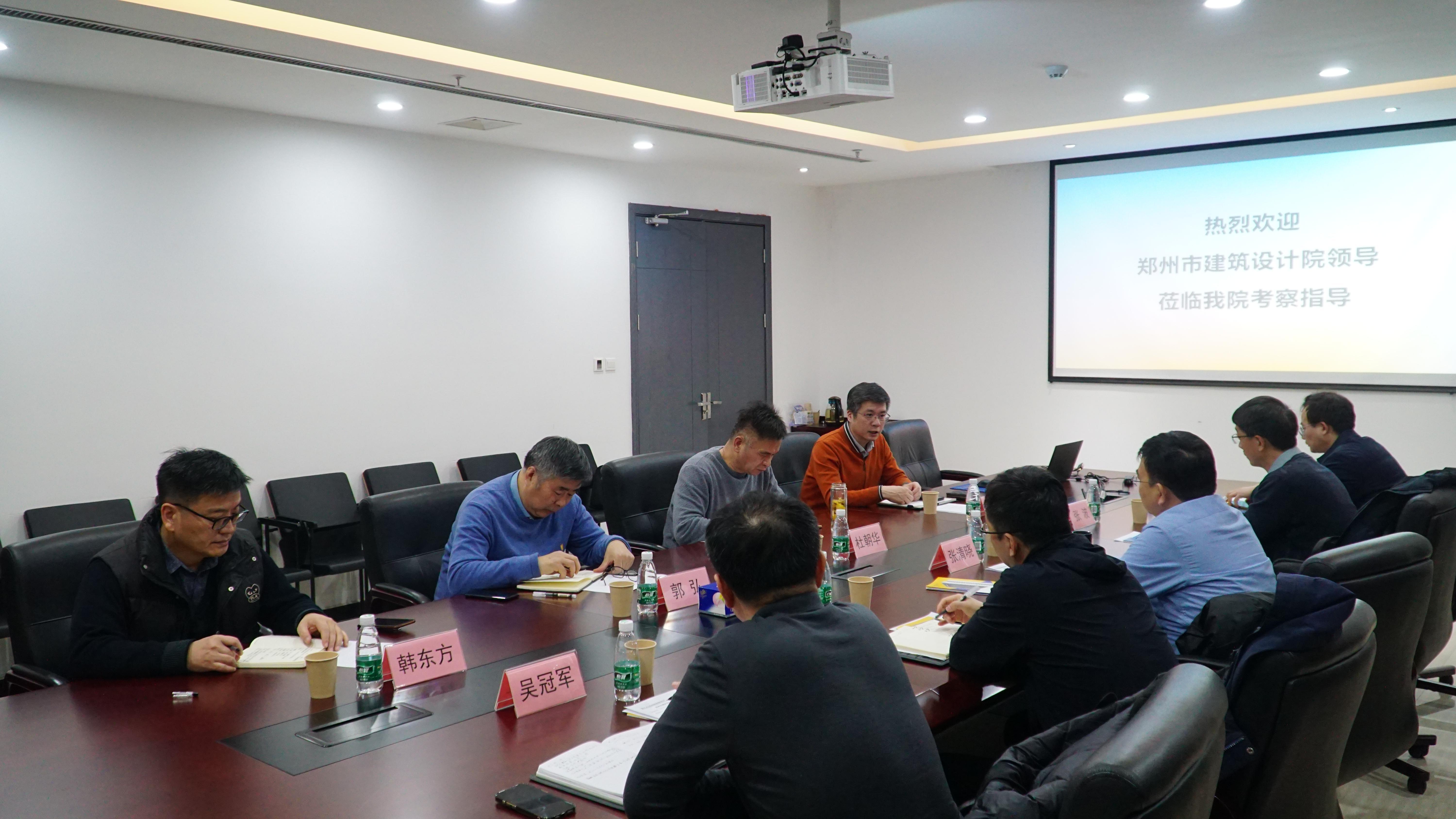杜朝华对郑州市建筑设计院各位领导表示热烈欢迎,希望两家国营设计院能够深入交流、共同研究探讨目前市场形势下的有效应对策略;黄涛向张书记一行介绍了我公司的基本情况。调研交流中,双方围绕国有设计院机构设置、市场营销、内部管理制度、绩效考核、分配制度、党群活动等多方面,进行了务实详细的交流,并就其他共同关心的问题进行了探讨。