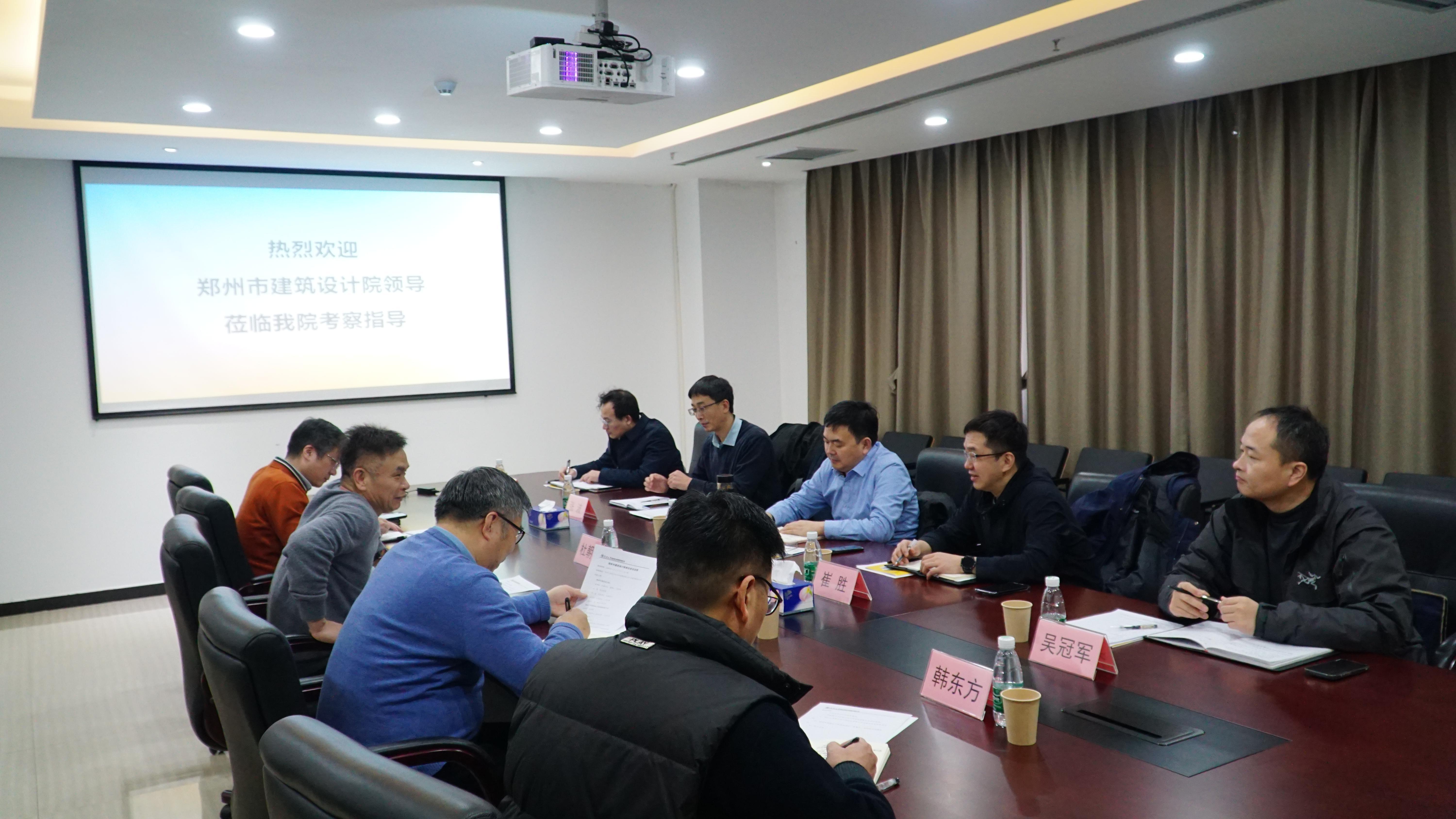 1月2日下午,郑州市建筑设计院党委书记、董事长、总经理张清晓、副总经理崔胜、纪委书记张波、工会主席吴冠军、党政办主任李冰洋一行5人来我公司调研交流,杜朝华总经理,支部书记、副总经理、工会主席郭弘,副总经理黄涛及综合办负责同志参加了调研座谈。