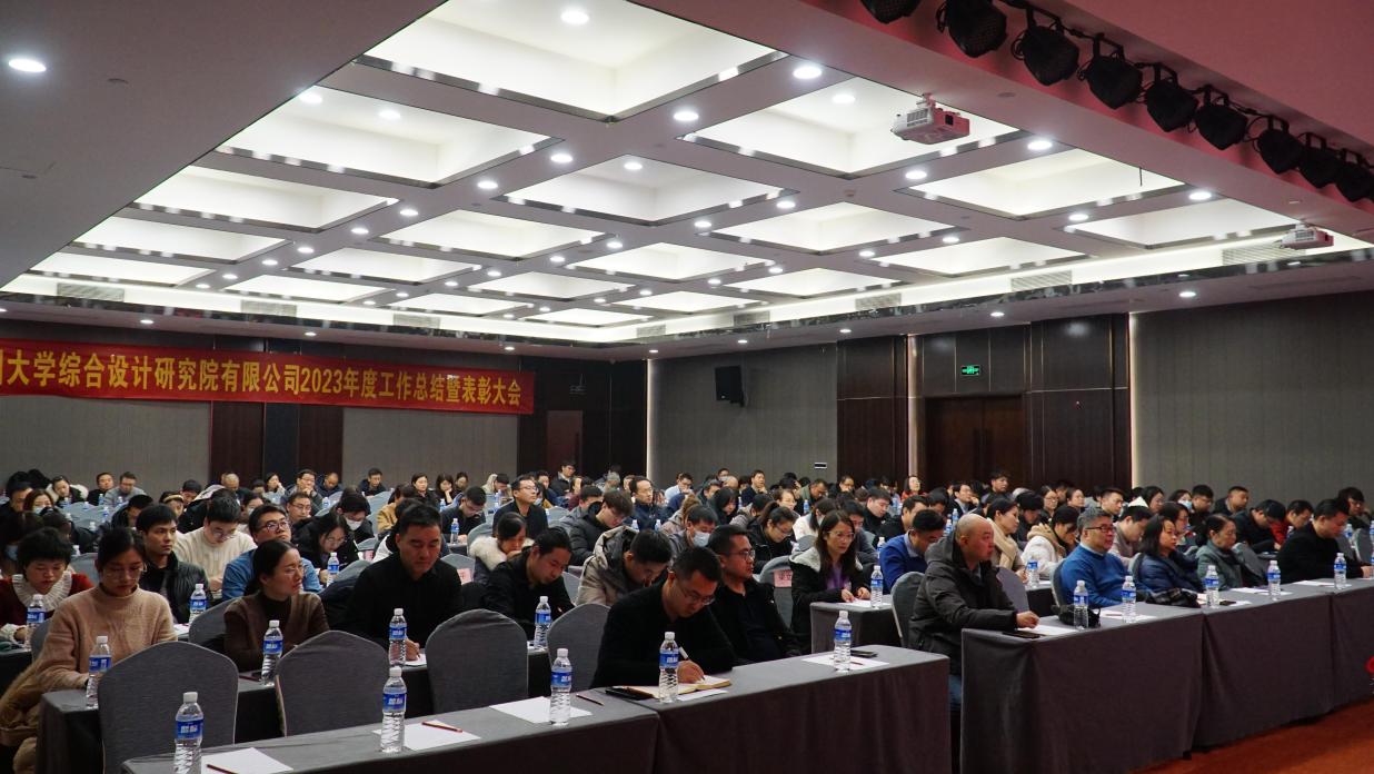 杜朝华总经理从党建工作、生产经营、项目获奖、运营管理、科技创新、队伍建设、企业文化、行业学会活动和存在问题等9个方面,全面总结回顾了公司2023年的主要工作。这一年,公司在学校和资产公司的正确领导下,步履铿锵,在高质量发展的道路上,踩下了更加扎实的脚印;在低迷的行业市场中准确研判找机遇,在组合优化机构中创活力,在平台建设中抢先机,通过公司全体干部职工的共同努力,在整体行业形势仍是严冬的情况下,力保建筑设计主业逐步趋稳,专业领域多点突破,有效地遏制产值下滑势头,营业收入总体稳定,基本达到预期目标,为实现明年稳中有进的发展基调打下坚实基础。