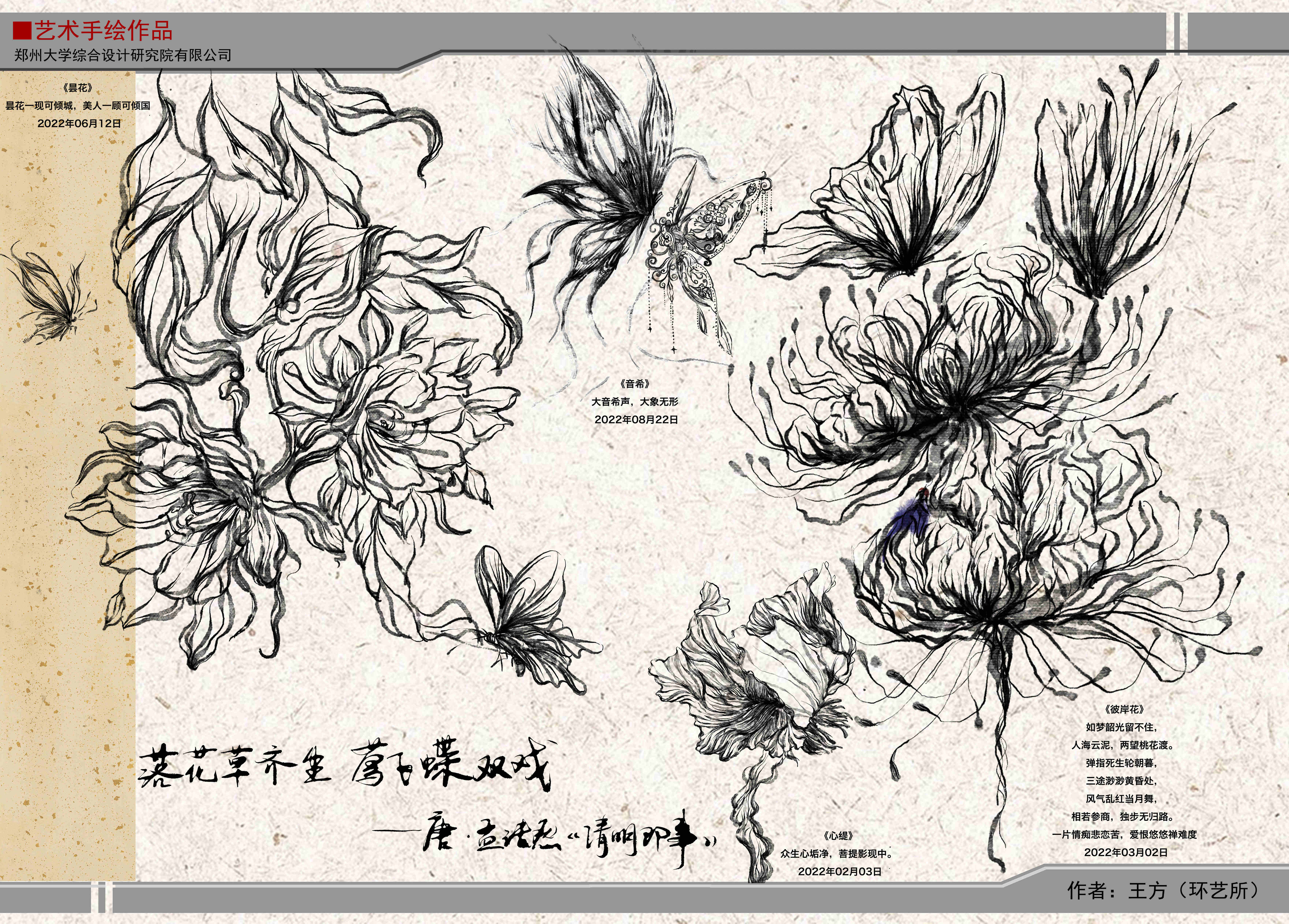 本次展览汇聚了众多手绘佳作,不仅包括各类建筑项目的设计草图、效果图和细节描绘,还有动漫、人像、花与蝶以及独具中国特色的山水园林景观等。本次展览设立了设计师风采展示区,分别展示参展设计师的个人简介、主要作品、获奖情况以及设计心得等,观众们可以近距离了解设计师们的成长历程、设计风格和工作状态,感受他们对建筑事业的热爱与执着。一笔一画勾勒出来的艺术作品,不仅彰显了建筑人的文化底蕴和创造力量,更仿佛把我们带回到从前轻车慢马、不徐不疾、自我陶醉的艺术时光。