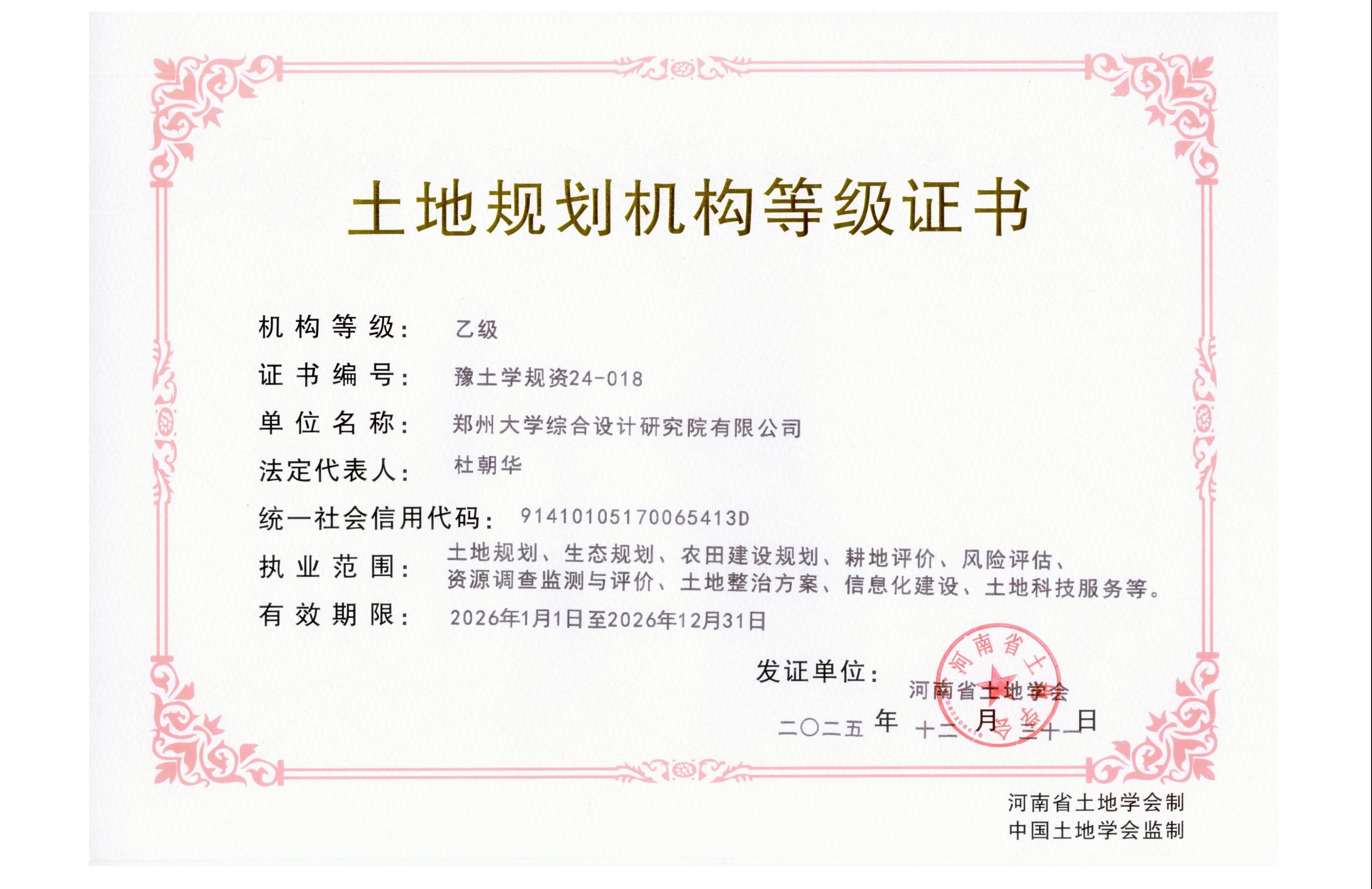 土地规划机构等级证书