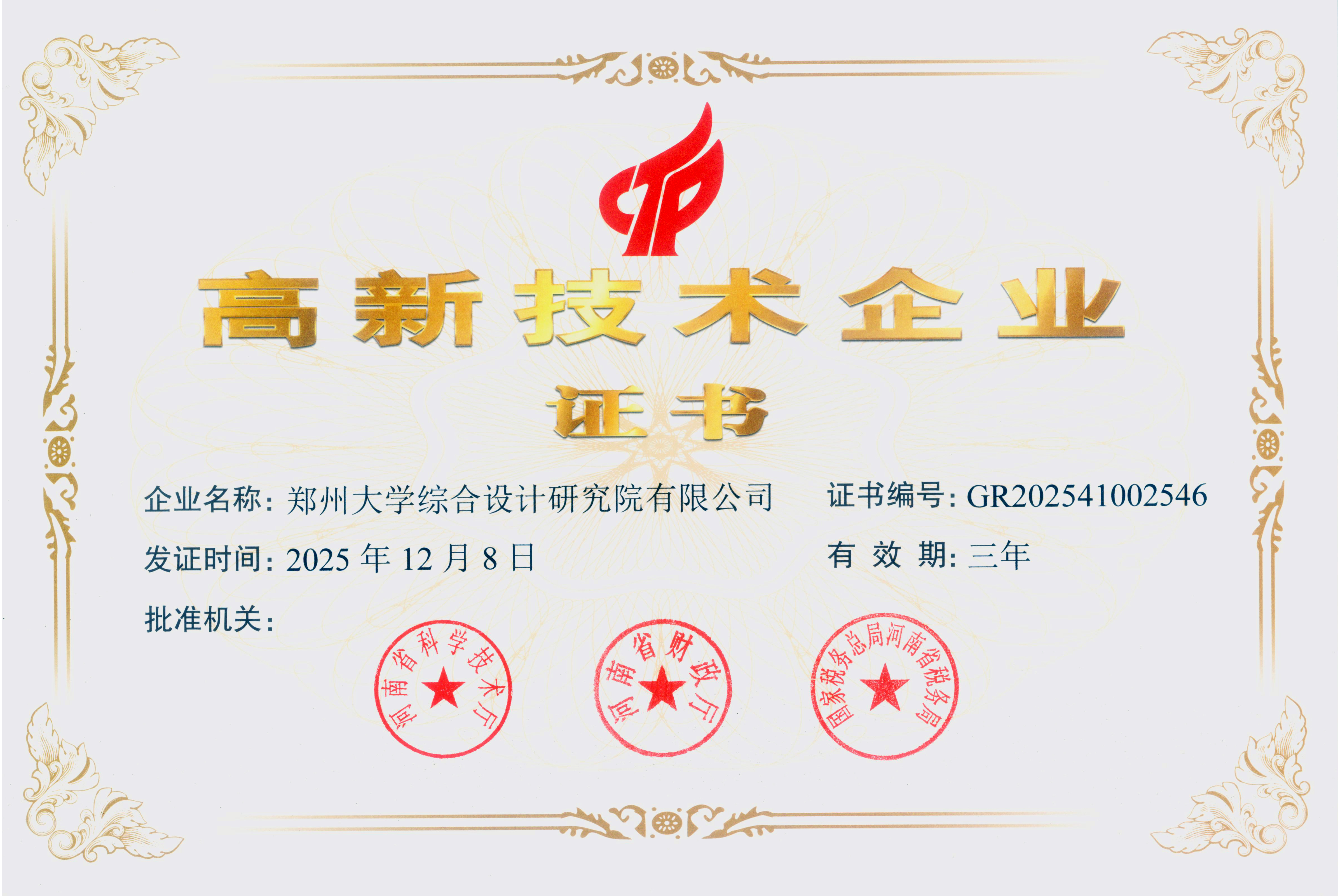高新技术企业证书