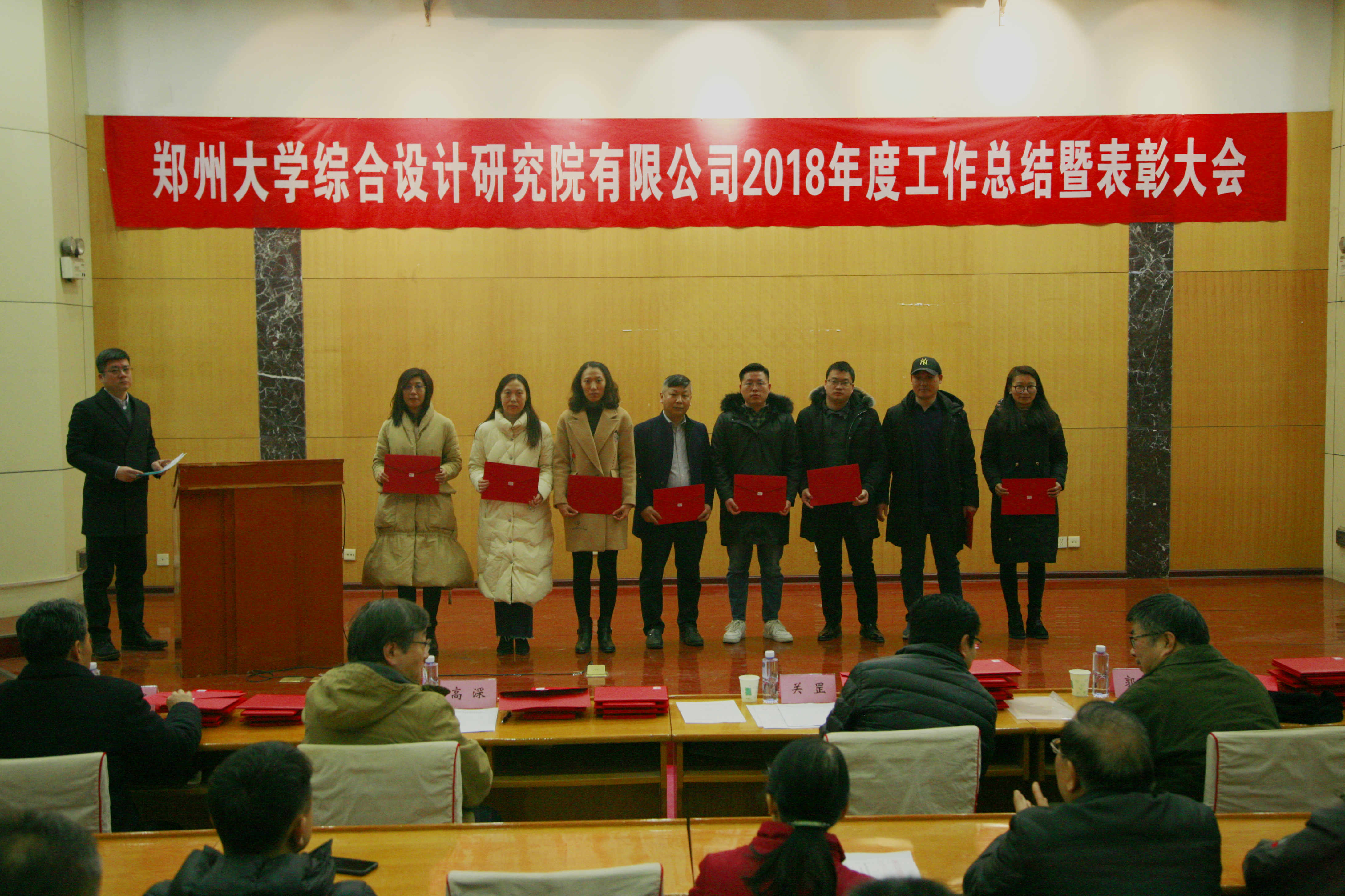 大会公布了《郑州大学综合设计研究院有限公司2018年度奖励公告》;《郑州大学综合设计研究院有限公司2018年度(首届)优秀建筑设计奖获奖名单》和《2018年度先进工作者嘉奖令》,并对获奖部门、个人及先进工作者颁发了证书和奖金。