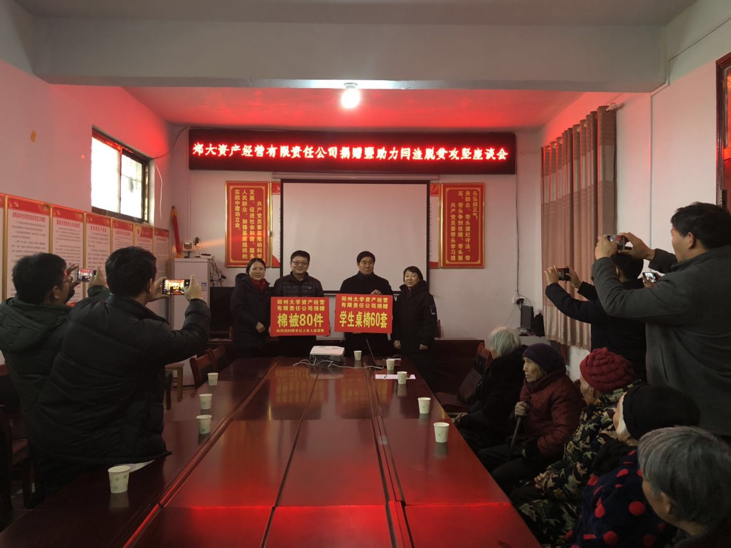 12月14日,资产公司党总支书记关罡及公司工会领导、设计院代表等一行6人,前往泌阳县双庙街乡闫洼村,看望学校派驻闫洼村第一书记潘华和资产公司驻村队员乔德旗同志,慰问乡亲送去温暖,助力乡村规划,并向闫洼村转交了由资产公司所属各企业员工捐献的63588元现款,其中郑州大学综合设计研究院有限公司捐赠善款36387元。
