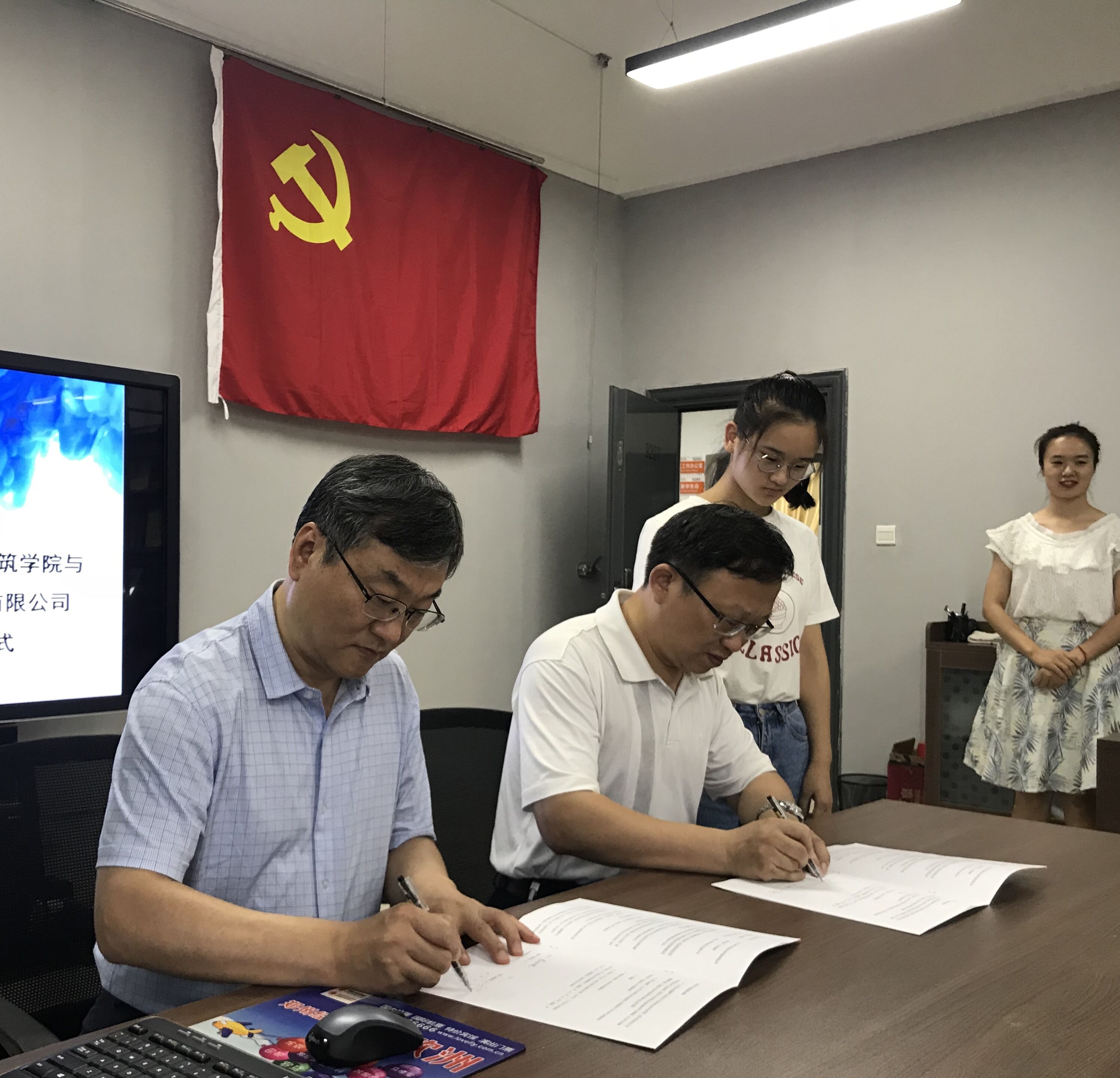 签约仪式由建筑学院党委副书记雷鸣主持。首先,高深副总经理和李红光副院长分别对公司和学院的情况作了简要介绍,并表示期盼通过建立就业实习基地,为学生创造良好的就业实践平台,也能为企业储备、遴选人才,促进公司和学校的共同发展。最后,双方签署了《校企合作实习基地协议书》。