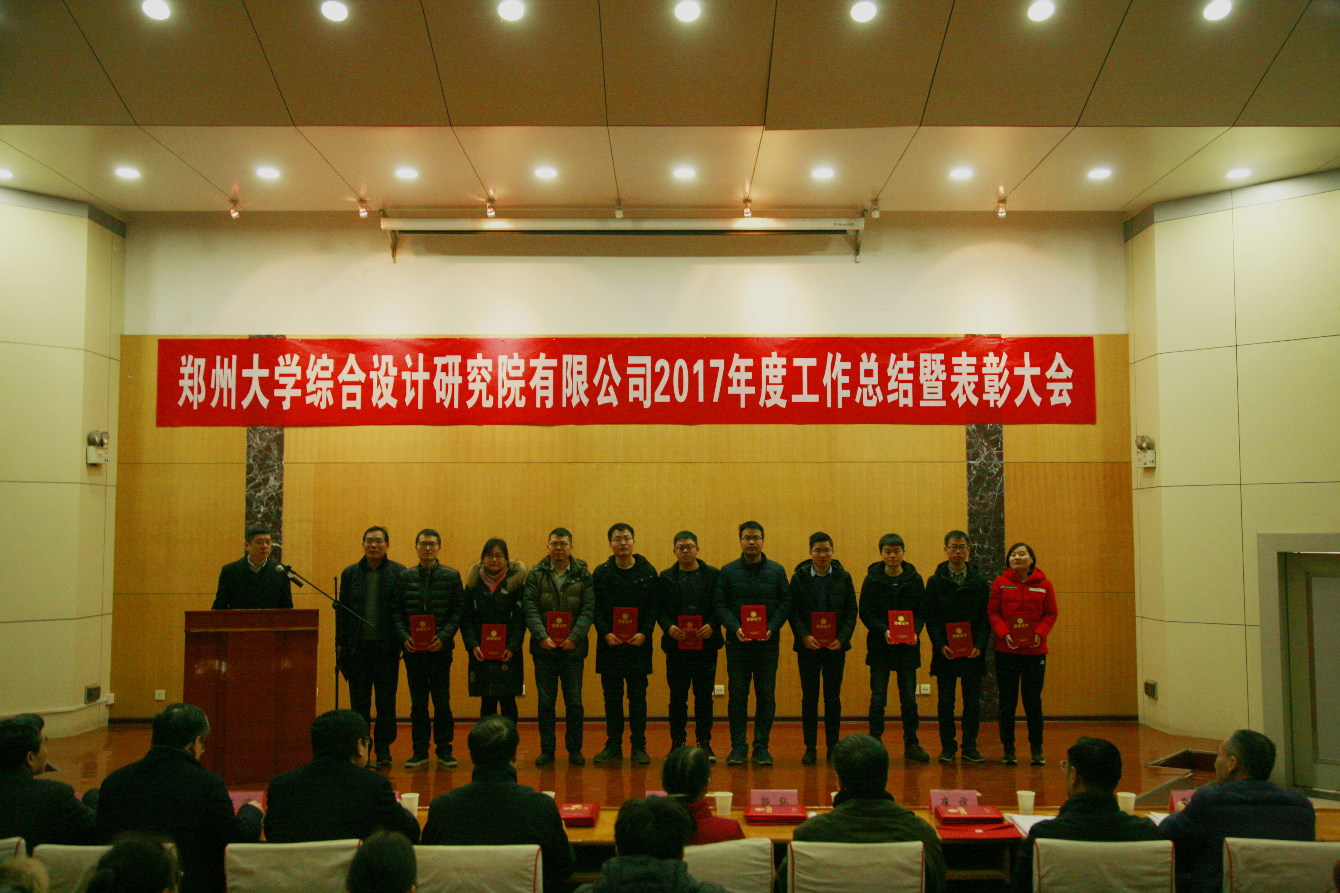 大会首先由谢丽丽总工程师宣读了《郑州大学综合设计研究院有限公司2017年度奖励公告》;高深副总经理宣读了《2017年度先进工作者嘉奖令》。资产公司领导及公司班子成员作为颁奖嘉宾向获奖部门、个人及先进工作者颁发了证书和奖金,鼓励他们在各自的岗位再上台阶、再创佳绩。
