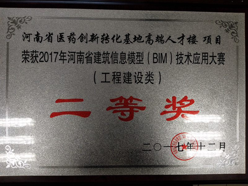我公司参与申报的“河南省医药创新转化基地高端人才楼”项目荣获工程建设类二等奖。本次获奖体现了我公司对BIM技术发展的重视,希望以此为契机,将更多BIM应用优秀院所和项目的先进经验和成果进行推广,搭建BIM技术应用示范经验交流机制和平台,为我公司BIM技术发展贡献出一份力量。