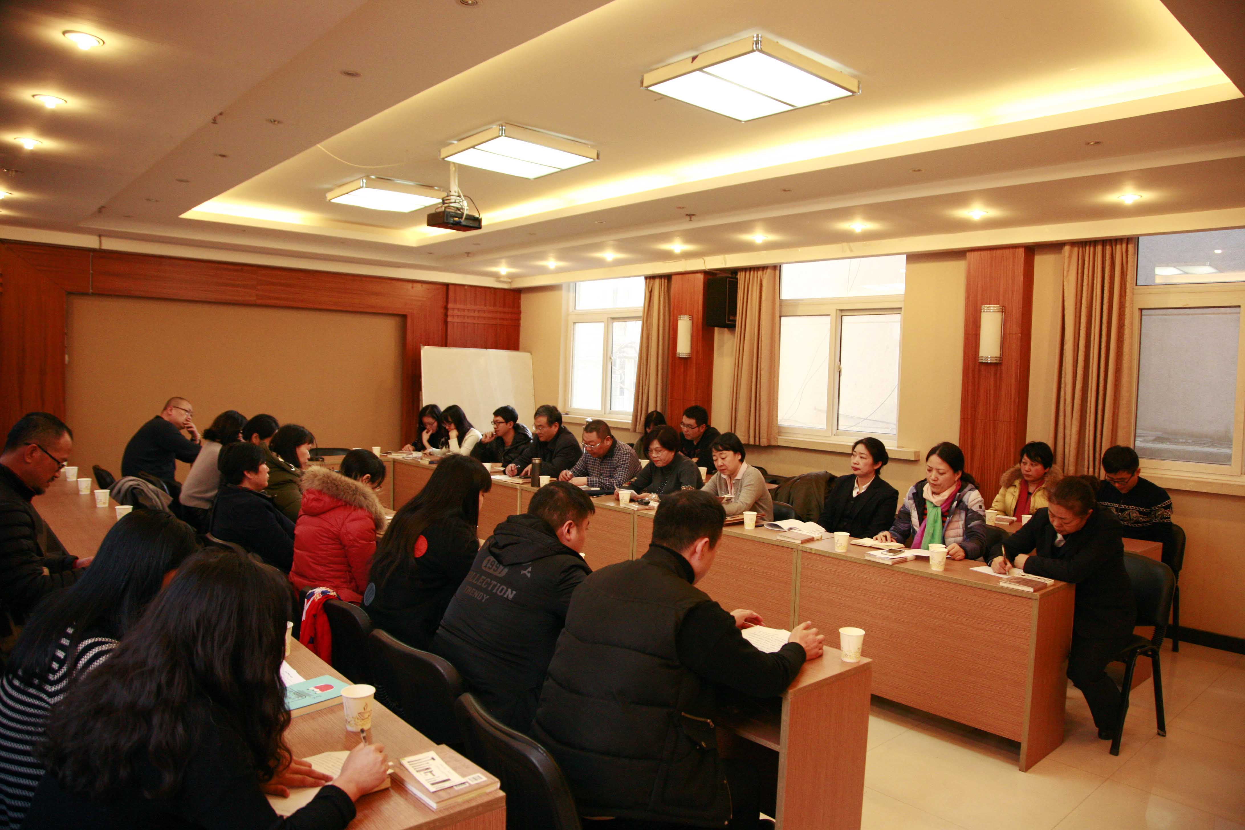 2016年12月22日资产公司工会组织下属14个单位企业工会小组职工代表,在郑工宾馆第三会议室举行读书座谈会。公司副总高深同志参与座谈会并致开场白。