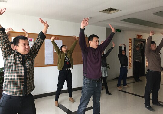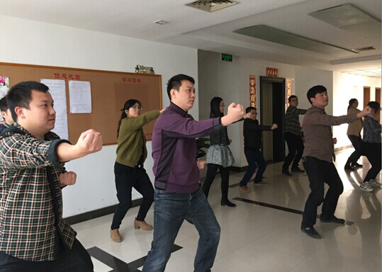 “八段锦”健身功法是国家体育总局推广的全民健身功法之一,是中华民族传统体育项目,易学实用。动作柔和连绵,滑利流畅;有松有紧,动静相兼。我院各室员工利用每天工作间歇时间积极学习,广泛普及,从而达到强化体质、愉悦心情、增强集体凝聚力的效果。
