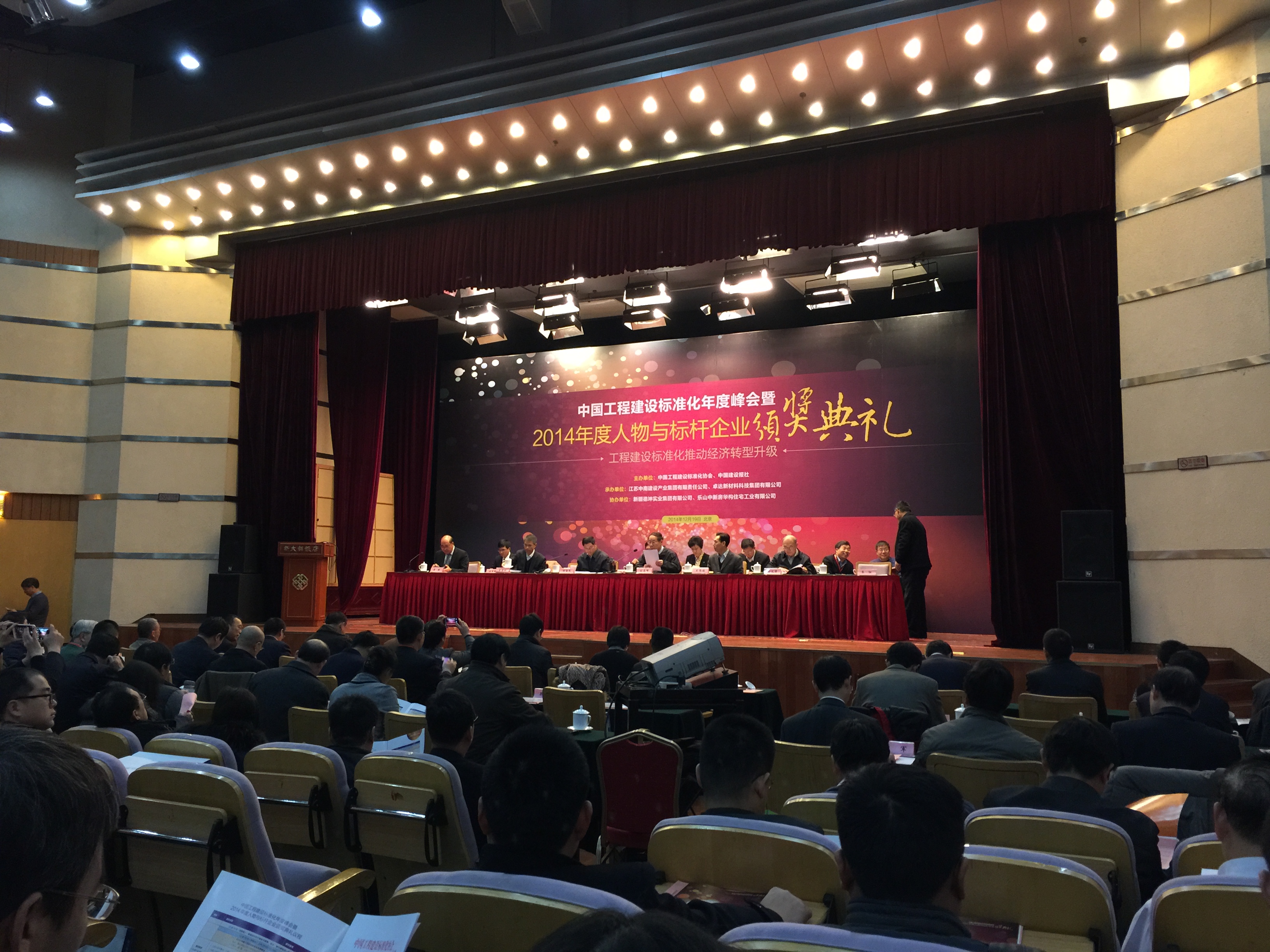 2014年12月19日,中国工程建设标准化年度峰会暨2014年度人物与标杆企业颁奖典礼在北京新大都饭店国际会议中心隆重召开。国家有关部委、有关行业协会领导、主办单位领导及200余家企业代表参加此次盛会。会议围绕工程建设标准化推动经济转型升级这一主题,邀请国内知名专家结合国家宏观经济形势和新型工业化、信息化,特别是城镇化发展趋势,采取探讨、对话交流等形式,分析新趋势,探索新思路,交流新经验。会上还对50位年度人物和50家标杆企业进行了表彰,我院荣获“2014低碳环保推广标杆企业”称号。这项荣誉充分肯定了我院在绿色低碳、节能减排、生态环保方面所做的工作,以此为契机,我院将在工程设计领域积极参与制标、对标、贯标工作,对工程建设标准化事业做出更大贡献。